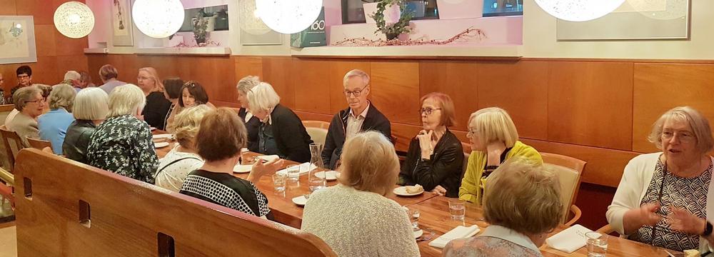 Lounasklubi kokoontui Kevätkauden päättäjäislounalle Ravintola Mamma Roosaan 30.5.2023. Kuvassa vain osa osallistujista pitkän pöydän molemmin puolin. Hilpeä tunnelma kruunasi erinomaisen ruoan ja joustavan tarjoilun.