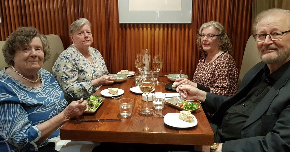 30.5.2023 Lounasklubi kokoontui Ravintola Mamma Roosassa, Töölön senioreitten puheenjohtaja Harriet Kervinen, toinen vasemmalta, lounasti pienemmässä pöydässä./Kuva: Ritva Hiironen.