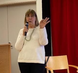 Sirkka Ekola Helsingin sydänyhdistyksestä esitteli sydäniskurin käyttö. Hän kertoi myös, että kannattaa ladata puhelimeen 112-äppi, sillä siitä näkyy lähimmän sydäniskurin sijainti.